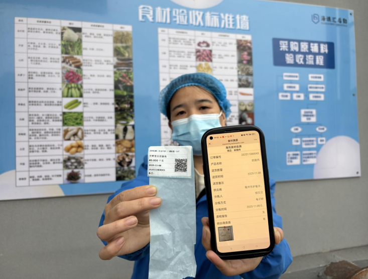 “嘀——”一声轻响,仓库办理员胡贝贝掏出手机,瞄准亳州二中订制的“前腿肉”二维码——屏幕霎时弹出:供应商、动检号、铅汞检测成果……“数据一跳出来,肉就像被X光扫过,谁还敢‘混水摸鱼’?”她说。
