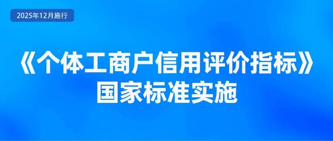 市场监管总局组织制定发布《个别工商户信用评价目标》(GB/T 46278—2025)国度尺度,于12月1日正式实施。开展个别工商户信用评价,旨正在阐扬信用价值,帮力金融机构开辟和供给适合个别工商户成长特点的金融产物和办事,扩大个别工商户贷款规模和笼盖面,提高贷款精准性和便当度。同时也将为实施分型分类精准帮扶,加大“个转企”摸索力度,激励、支撑、指导个别工商户持续健康成长供给尺度化支持。