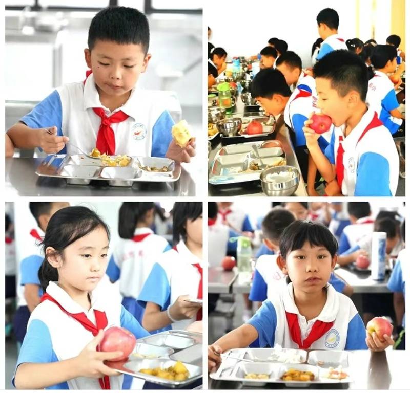 “今天半夜吃的是双色花菜炒肉、土豆炖牛腩、清炒白、南瓜汤,此中双色花菜炒肉、土豆炖牛腩,是我最爱吃的菜,还给每人发了一个苹果,很是甜!”这位正正在就餐的学生这番话语,道出学生们的配合。从现场孩子们吃得颗粒不剩的餐盘能够看出,大师对这顿午餐很是对劲。